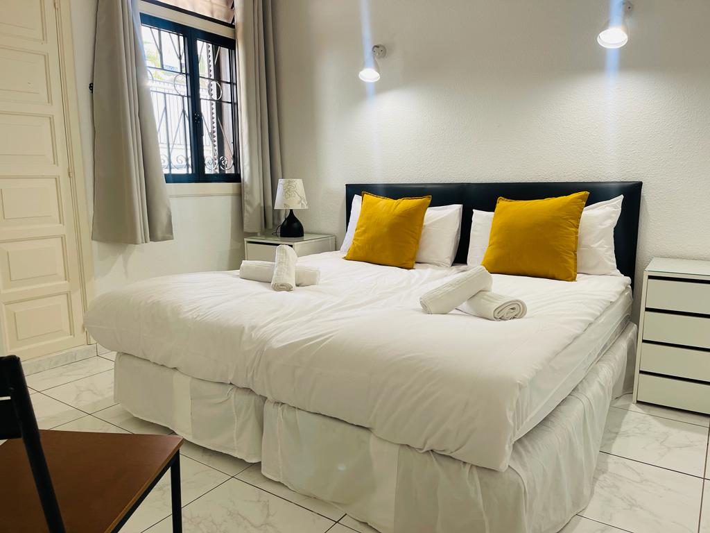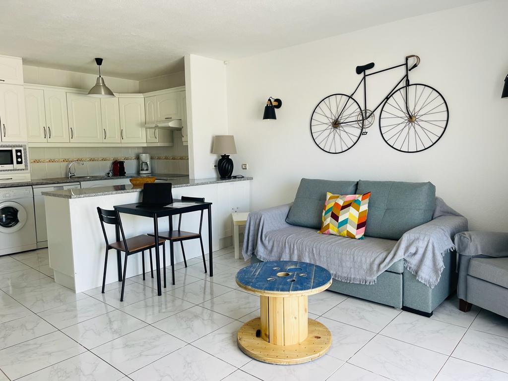 Disfruta de la comodidad de este tranquilo y céntrico apartamento en Los Cristianos. Este encantador apartamento cuenta con una amplia terraza soleada con tumbonas y unas hermosas vistas relajantes. Ofrece un dormitorio con una cama grande, un baño, cocina totalmente equipada, salón con sofá cama y piscina comunitaria. Está ubicado en Los Cristianos, cerca de tiendas, bares, restaurantes y a poca distancia a pie de la playa. Capacidad para 4 personas.