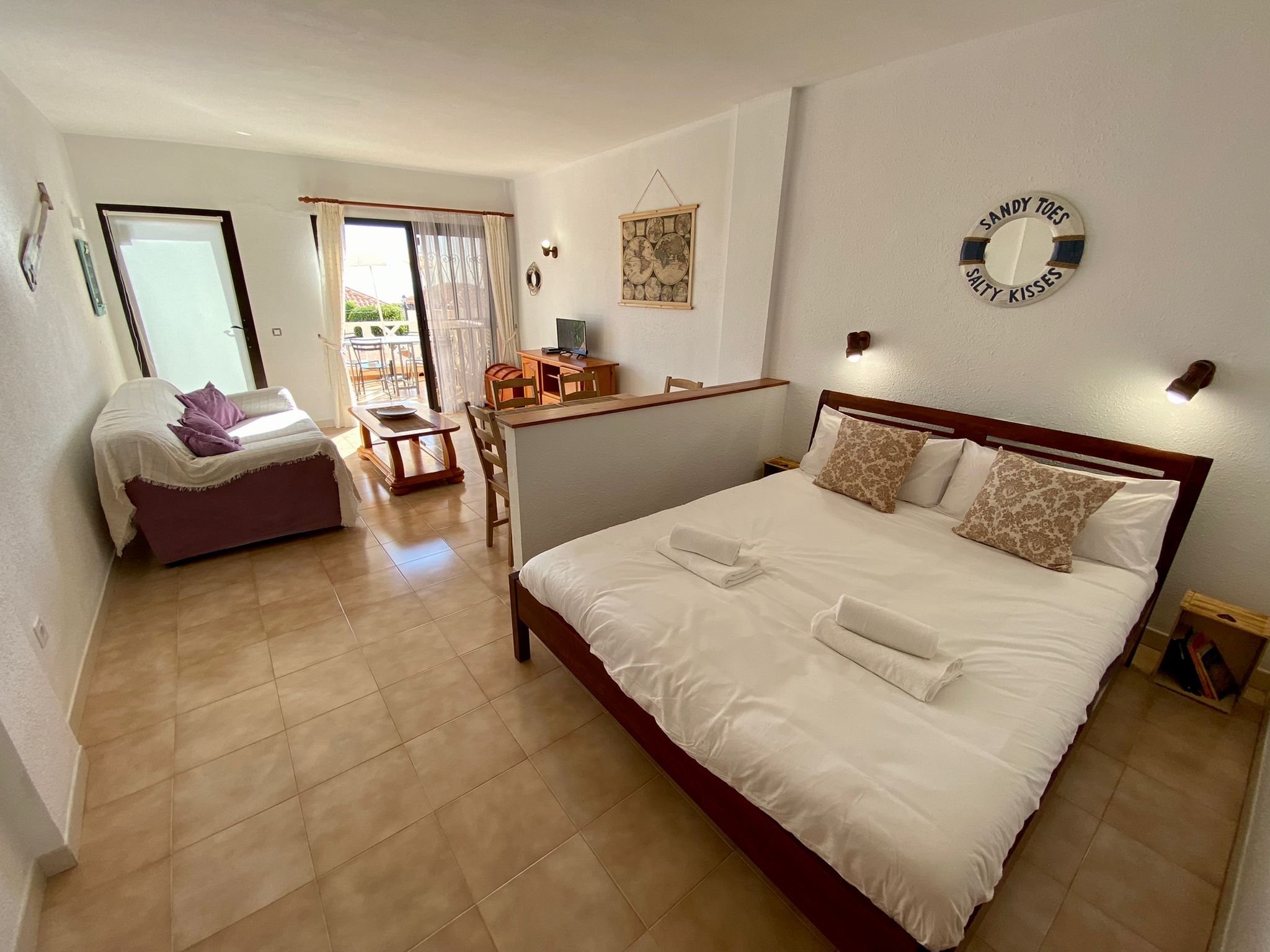 Precioso estudio con una cama doble, sofá cama y un baño, con una amplia terraza, cocina totalmente equipada y vistas magníficas. El apartamento dispone de WIFI gratuito de alta velocidad, cocina completamente equipada, TV y capacidad para 4 personas. La zona comunitaria es muy tranquila y cuenta con piscina climatizada. Ideal para parejas y familias.